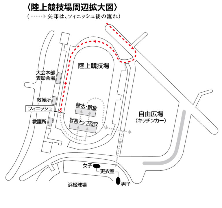 | 給水所 | フィニッシュ後の陸上競技場内フィールド内 |